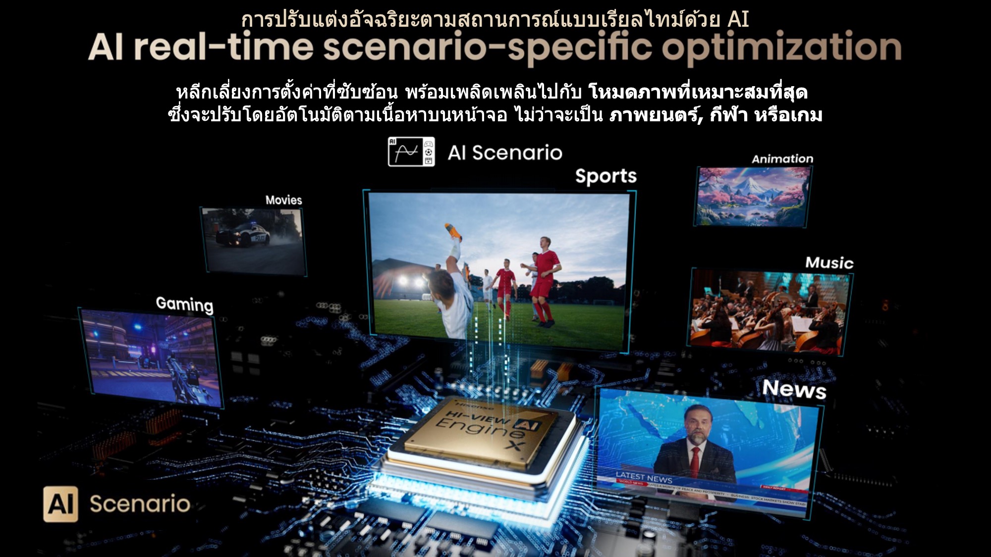 – Hi-View AI Engine : ปรับภาพ/เสียงอัตโนมัติให้เหมาะกับตอนเทนต์และแสงแวดล้อม