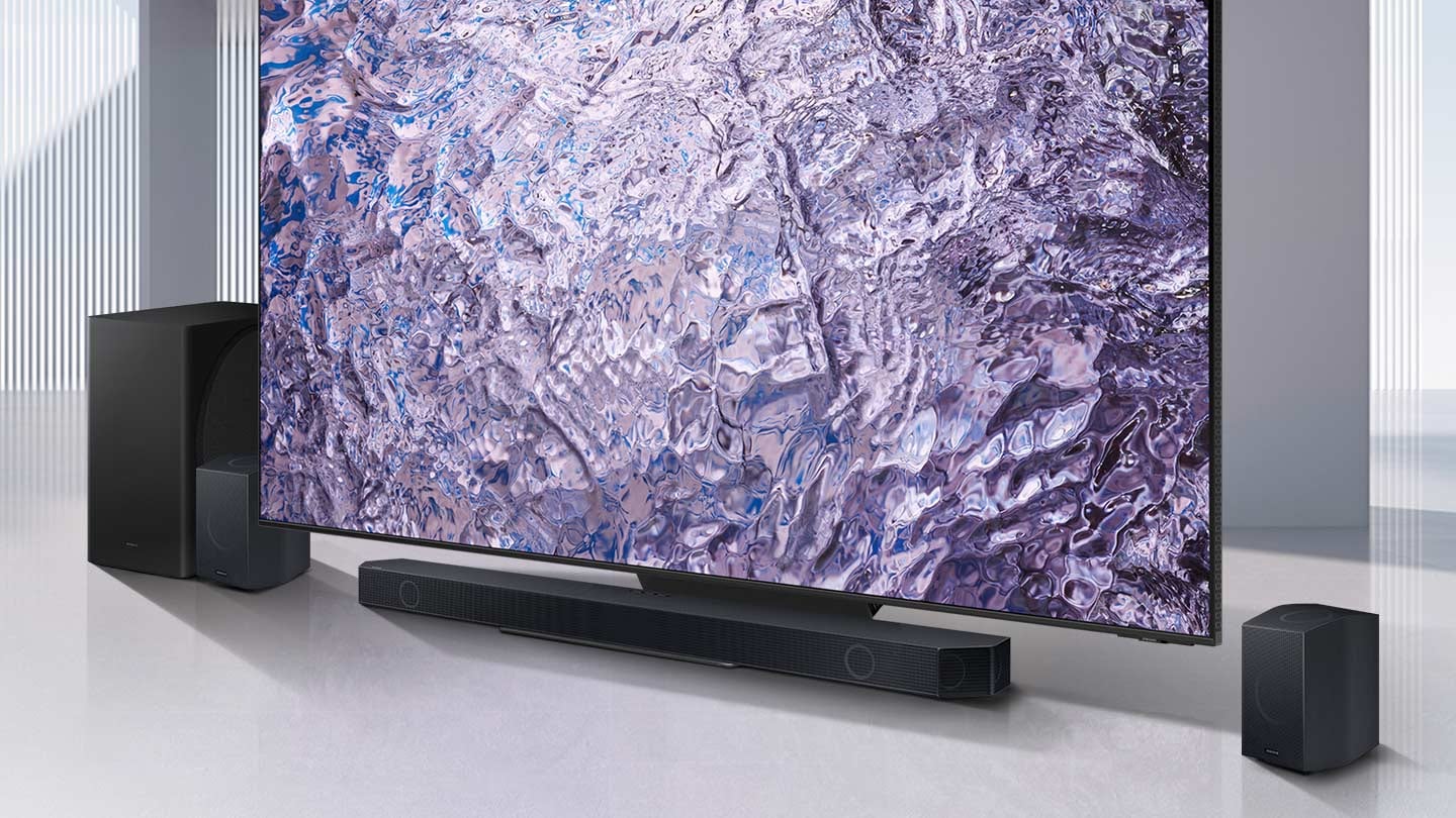 ตอนนี้รูปแบบเสียงแบบ Object-based ได้รวมเข้ากับซาวด์บาร์ของ Samsung แบบไร้สายแล้ว ดื่มด่ำไปกับเสียง 3 มิติขั้นสุดยอดของเนื้อหา Dolby Atmos ทั้งหมดนี้โดยไม่ต้องใช้สายเคเบิล