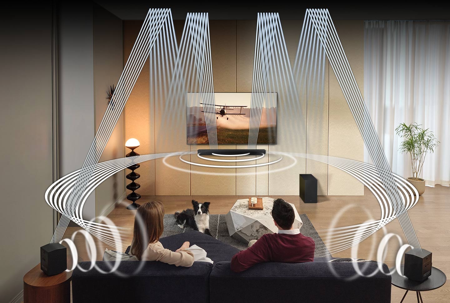 Q-Symphony ให้เสียงที่ปรับให้เข้ากันได้อย่างเหมาะสมทุกช่องทาง ทั้งลำโพงด้านหน้า ด้านข้าง และลำโพงระบบยิงเสียงขึ้นด้านบนซาวด์บาร์เพื่อความดื่มด่ำไปกับสุนทรียภาพแห่งเสียงในระดับสูงสุด