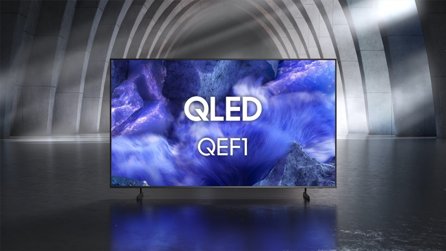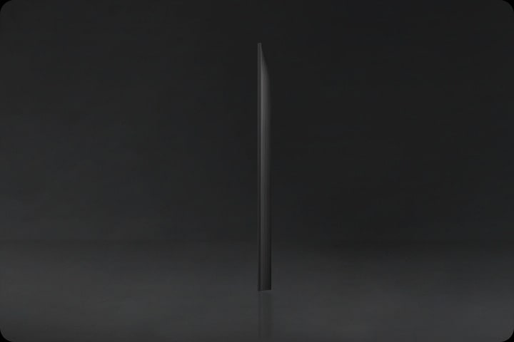 มุมมองด้านข้างของทีวี QLED แสดงให้เห็นดีไซน์บ