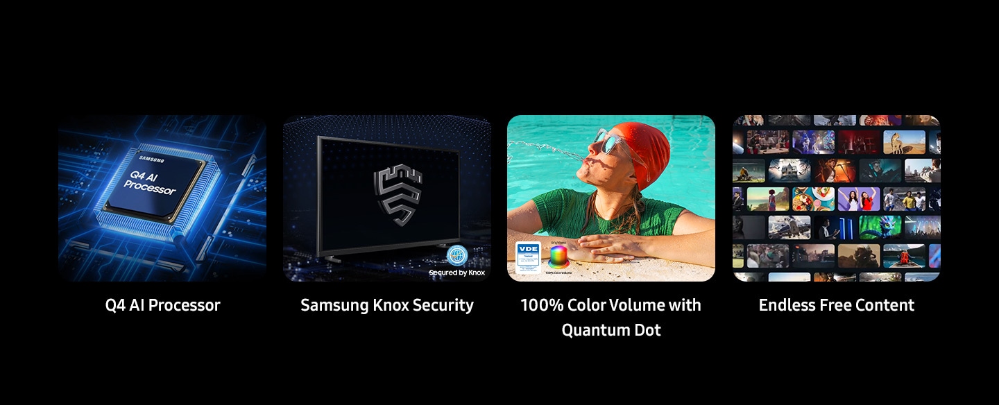 – สัมผัสพลังของ AI ในระดับ 4K หน่วยประมวลผล Q4 AI หน่วยประมวลผล AI ของ Samsung จะช่วยปรับประสบการณ์การรับชมและเสียงให้ลงตัวกับ 4K TV ได้