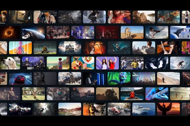 อาร์เรย์ของหน้าจอที่แสดงเนื้อหาต่างๆ ภาพมุมสูงเผยให้เห็นหน้าจอเพิ่มเติมและเนื้อหาจำนวนมากที่พร้อมใช้งาน เนื้อหาฟรีที่ไม่มีที่สิ้นสุด หน้าจออื่นๆ ปรากฏขึ้น สัมผัสประสบการณ์ที่ชาญฉลาด เหนือชั้น หน้าจอเลื่อนไปทางด้านข้างราวกับว่าเลื่อนผ่าน รายการทีวี กีฬา ภาพยนตร์ ละคร เพลง ยกระดับความบันเทิงของคุณ