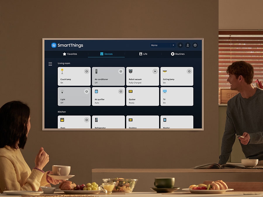 ปรับแต่งอุปกรณ์ในบ้านของคุณให้เข้ากับสมาร์ทไลฟ์สไตล์ที่เหมาะกับความต้องการของคุณ และด้วยศูนย์รวม SmartThings แบบในตัวของเรา คุณจึงสามารถเพลิดเพลินไปกับสมาร์ทโฮมแบบปรับแต่งเองได้ด้วยอุปกรณ์ต่าง ๆ ที่รองรับกับ SmartThings ซึ่งจะช่วยให้ชีวิตประจำวันของคุณง่ายขึ้น