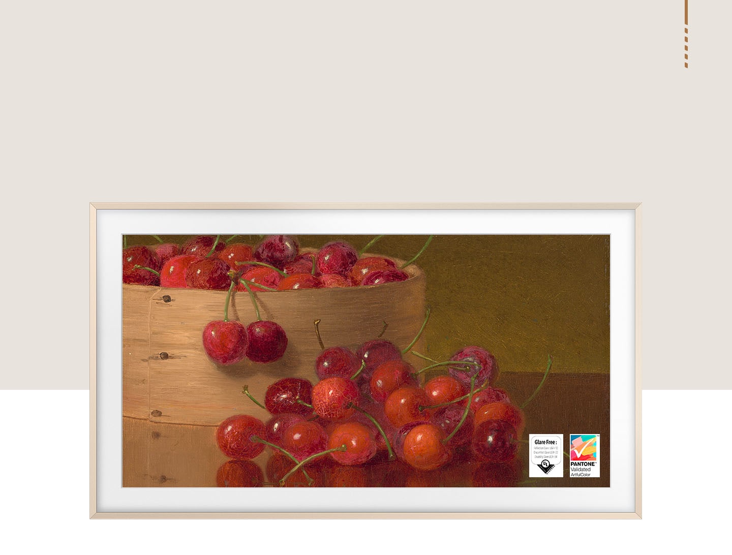 พบกับการแสดงสีสันสมจริงที่ผ่านการตรวจสอบโดย PANTONE The Frame สร้างสีสันและลวดลายที่เต็มอิ่มของผลงานศิลปะชิ้นโปรดของคุณได้ด้วยความแม่นยำสูง และด้วย Matte Display ที่ช่วยลดแสงสะท้อนได้แล้ว คุณจะสามารถเพลิดเพลินไปกับมุมมองที่คมชัดของคอลเล็กชันของคุณ พร้อมชื่นชมผลงานในคอลเล็กชันที่ว่าได้ราวกับว่าชมอยู่ในพิพิธภัณฑ์จริง ๆ