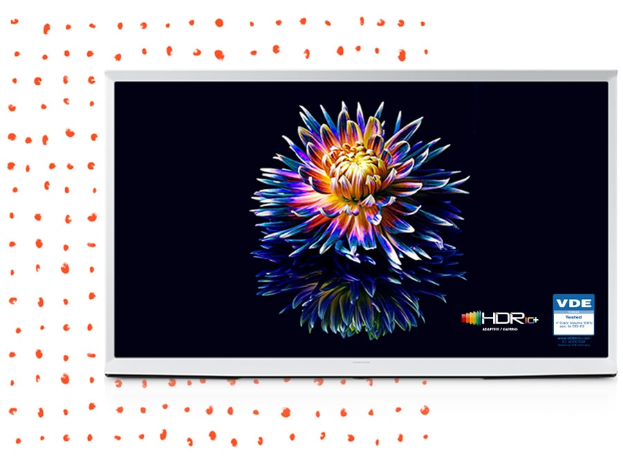 ด้วยระดับสี 100% เทคโนโลยี Quantum Dot จะเปลี่ยนแสงให้กลายเป็นสีสันอันน่าทึ่งดูสมจริงที่ระดับความสว่างต่าง ๆ ส่วนการสร้างโทนสีแบบไดนามิกของ HDR10+ ก็ช่วยให้ได้สีดำที่ดำสนิทกว่าเดิม, ภาพที่ดูมีชีวิตชีวาขึ้น และรายละเอียดที่ดูเฉิดฉายอยู่ตลอด
